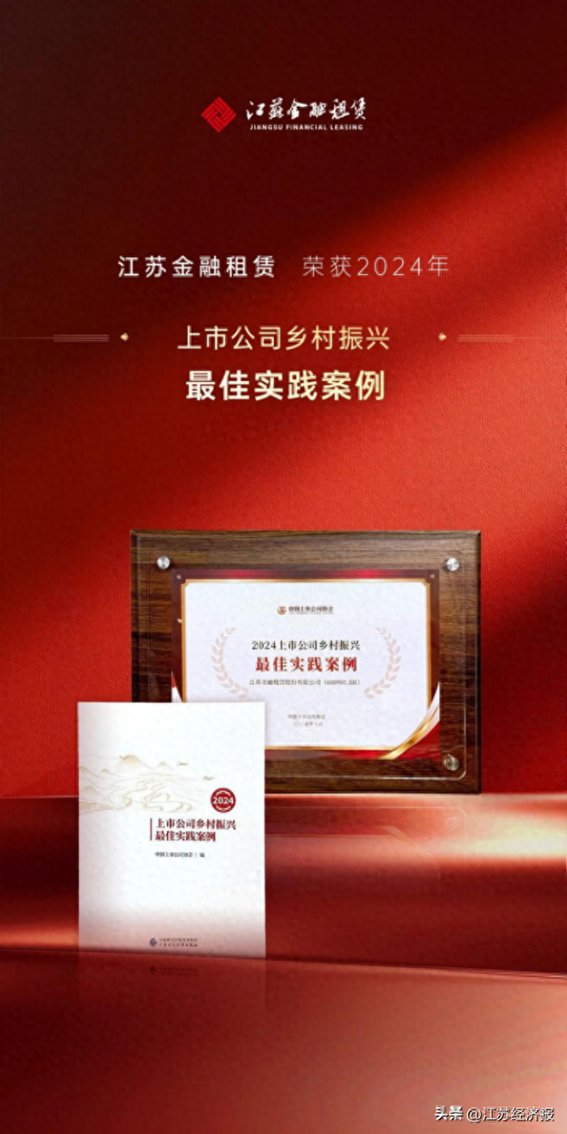 近日,中国上市公司协会公布了2024年上市公司乡村振兴最佳实践案例征集活动评选结果,江苏金融租赁股份有限公司(以下简称“江苏金租”)申报的《发挥“融资+融物”特色优势助力乡村振兴高质量发展》获评2024年“上市公司乡村振兴最佳实践案例”。