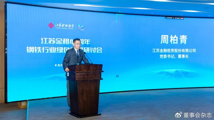 江苏金租党委书记、董事长周柏青在致辞中回顾了公司40年来坚守“融物+融资”特色、服务实体经济的历程。他指出,钢铁行业已成为公司“3+N+X”板块布局中的重要组成部分。在“双碳”目标背景下,钢铁行业正面临高端化、绿色化、智能化的转型趋势,尤其省内许多中等规模钢企在设备更新、节能改造、绿色转型等方面存在迫切资金需求。江苏金租将不断提升专业能力,在设备技改、超低排放、节能储能等领域为客户提供更精准、更有力的金融支持。