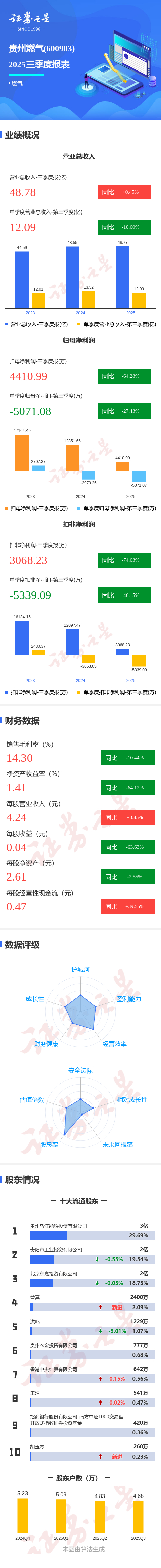 图解贵州燃气三季报:第三季度单季净利润同比下降27.44%