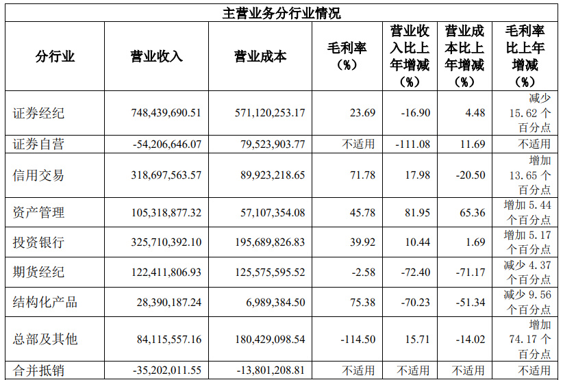 2022年,公司证券经纪和期货经纪业务收入分别为7.48亿元和1.22亿元,分别同比下降16.9%和72.4%。值得注意的是,2022年公司证券自营业务亏损5420.66万元,较上年减少5.43亿元,降幅达111.08%。