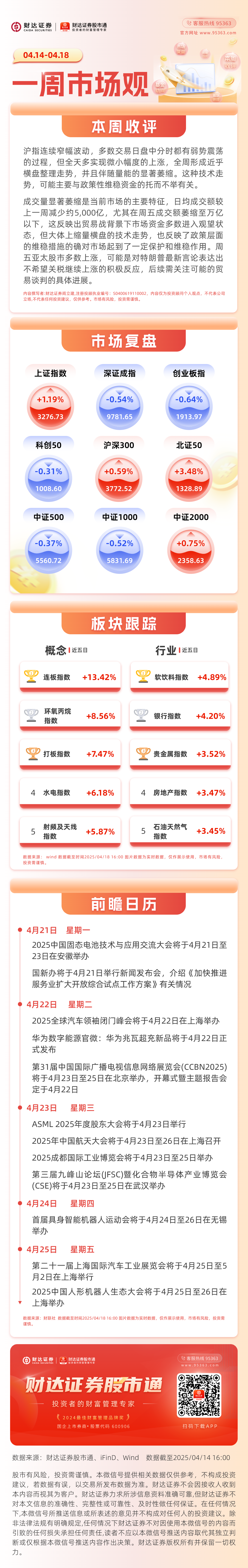 财达证券 | 一周市场观(4.14-4.18)