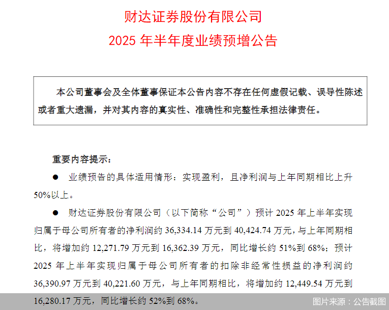 财达证券半年度业绩预增预告:归母净利润同比增长约51%—68%
