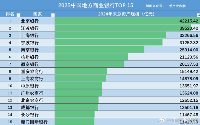 2025中国地方银行15强:江苏银行第2,徽商破2万亿,中原银行第10