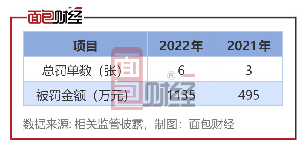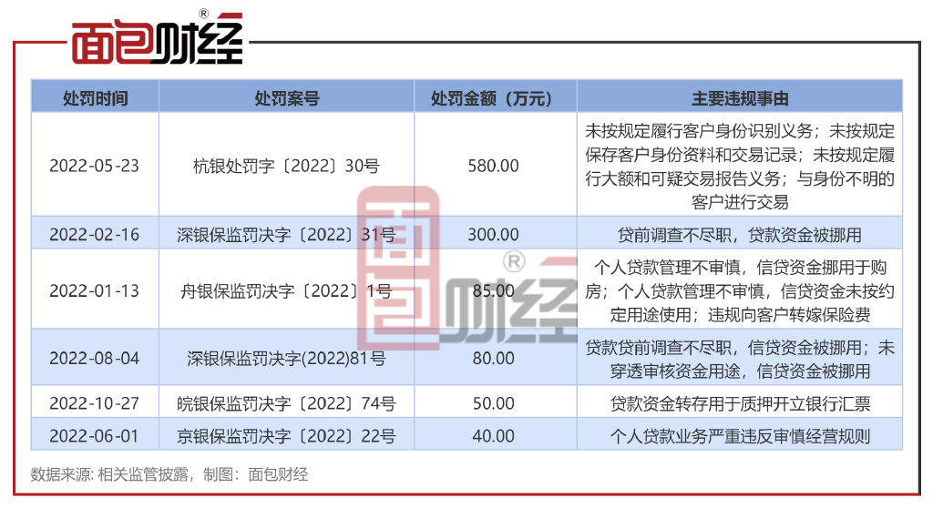 2022年1月、6月以及10月,该行均因信贷管理问题被处以罚款,罚款金额分别为85万元、40万元和50万元。