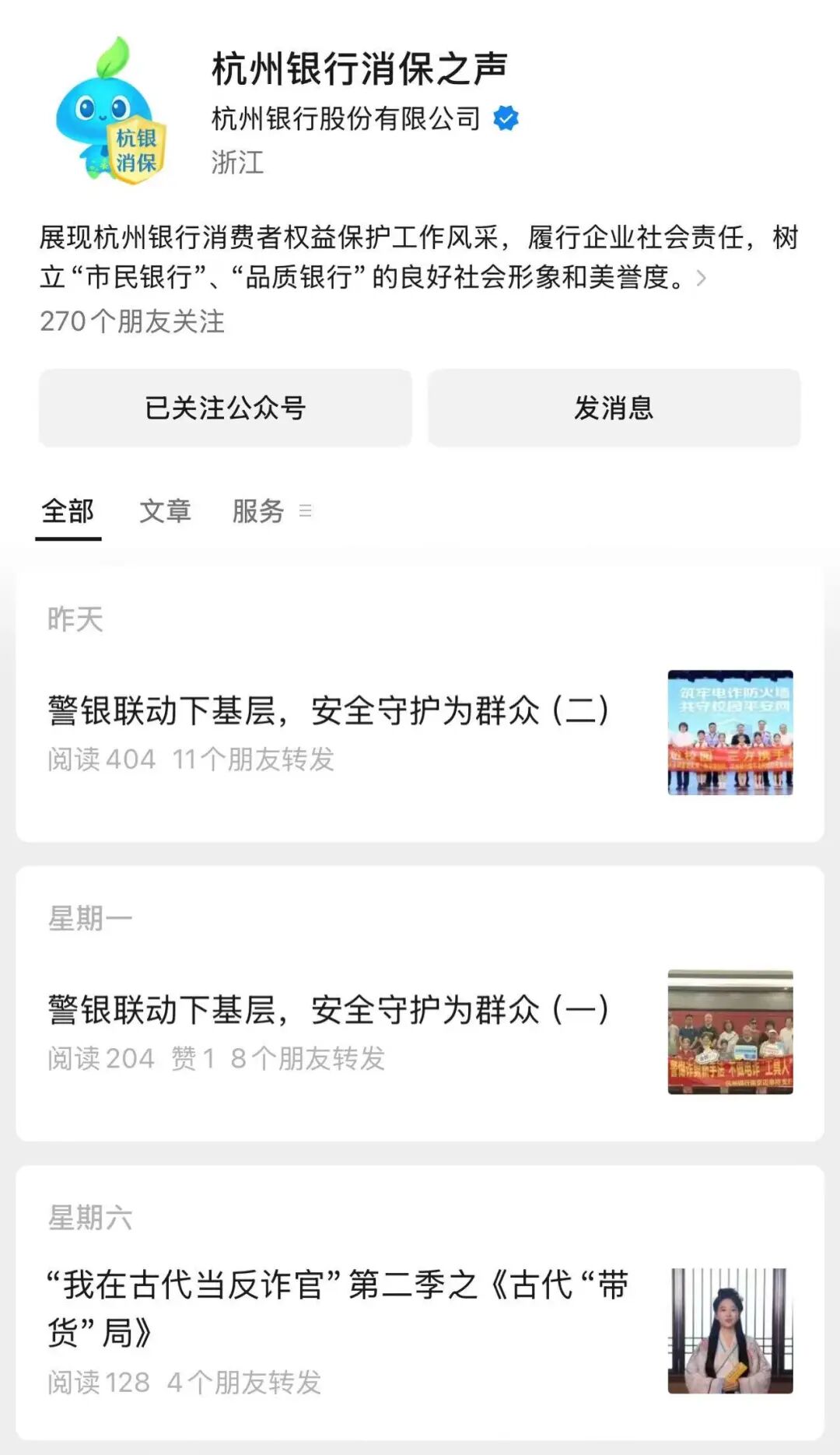 通过杭州银行官网、微信公众号“杭州银行微讯”“杭州银行消保之声”、手机银行APP及视频号等线上渠道集中造势,推出“反诈警钟长鸣”“消保讲堂”“做金融明白人”短视频展播等栏目和活动报道,吸引公众关注,扩大线上金融宣教的覆盖面。同时,充分发挥媒体的传播力量,联动开展宣传与活动报道。相关活动先后被央视新闻、央视频、新华网、中国日报等主流媒体报道,进一步提升了社会影响力。