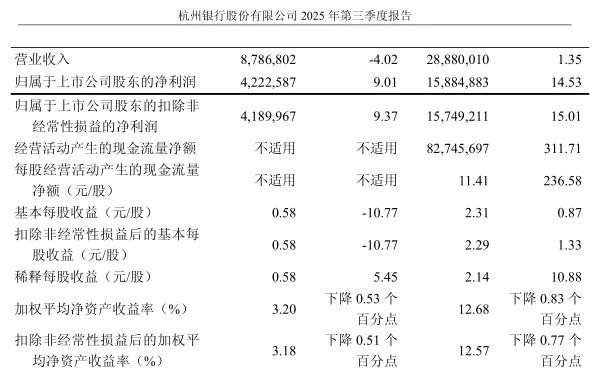 在杭州银行公布的三季度报告中,各项财务指标均有稳健攀升,但整体速率已经放缓。