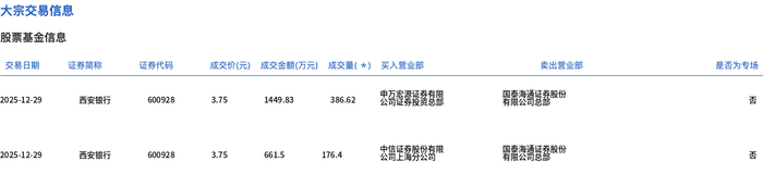 西安银行今日大宗交易平价成交563.02万股,成交额2111.33万元
