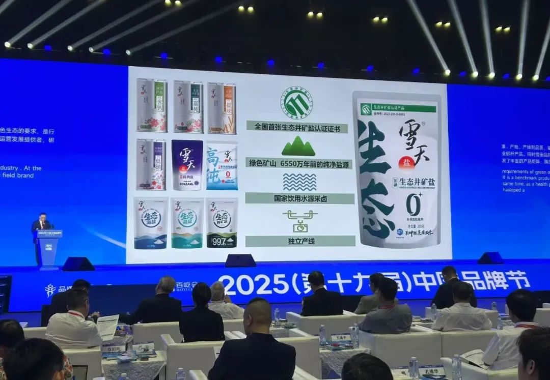 图为2025(第十九届)中国品牌节上,雪天盐业入选《TopBrand 2025中国品牌500强》榜单,品牌估值达184.99亿元