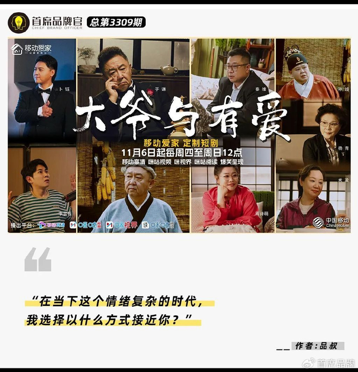 在进入内容前,我们需要先承认:移动爱家做短剧,是品牌表达方式的延展。