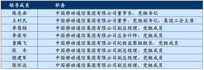 2026 年 2 月 10 日,中国移动通信集团有限公司董事、总经理、党组副书记何飚已离任。