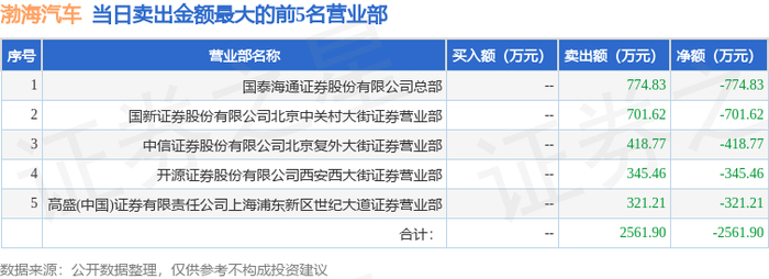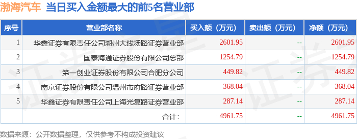 10月15日渤海汽车(600960)龙虎榜数据