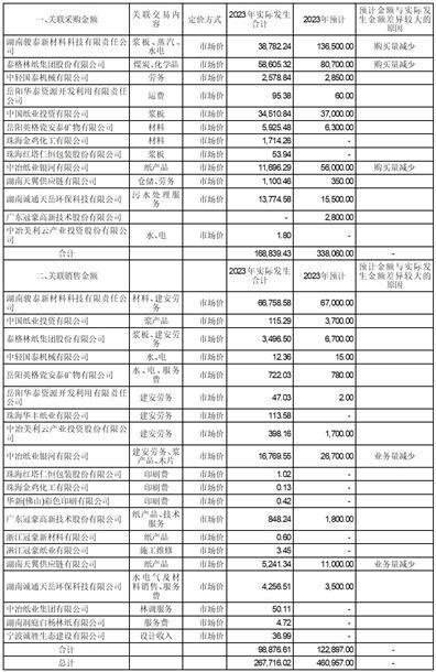 公司向中冶纸业银河有限公司、中冶美利云产业投资股份有限公司销售纸产品、提供工程服务;接受湖南诚通天岳环保科技有限公司污水处理服务,向岳阳英格瓷安泰矿物有限公司采购化学品。