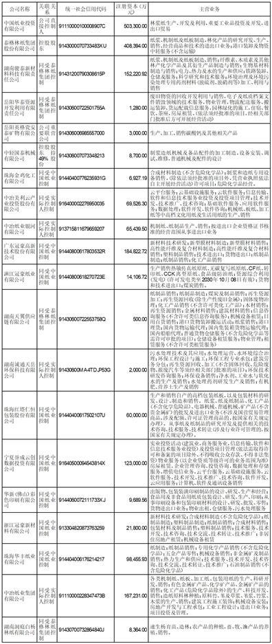 其他关联方均受中国纸业投资有限公司或泰格林纸集团股份有限公司控制。