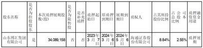 山东博汇纸业股份有限公司(以下简称“公司”或“本公司”)于2024年3月7日接到博汇集团通知,获悉其所持有本公司的部分股份质押展期,具体事项如下: