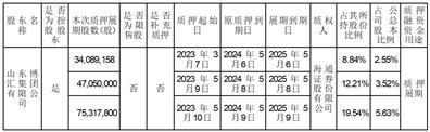 山东博汇纸业股份有限公司(以下简称“公司”或“本公司”)于2024年4月30日接到博汇集团通知,获悉其所持有本公司的部分股份质押展期,具体事项如下: