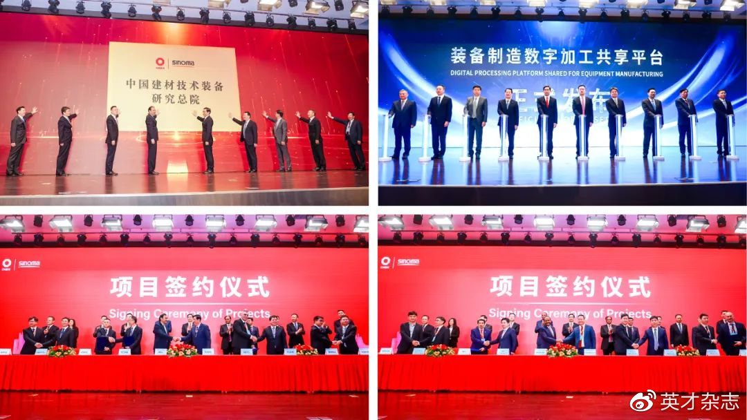 5月17-18日,中国建材集团党委书记、董事长,中国建材股份党委书记、董事长周育先受邀参加第七届世界智能大会开幕式,并出席数字赋能制造峰会暨中材国际首届水泥绿色智能发展峰会发表致辞,为中国建材技术装备研究总院揭牌,见证中材国际项目集体签约和装备制造数字加工共享平台发布。中国建材集团党委常委、副总经理,中国建材股份党委副书记、总裁魏如山;中国工程院院士,中国建材集团总工程师,凯盛科技董事长彭寿;中国建材股份党委副书记,中材国际党委书记、董事长刘燕;中国建材股份党委常委,新天山水泥党委书记、副董事长肖家祥;中材国际党委副书记、总裁印志松;中材国际副总裁、天津水泥院董事长何小龙等出席峰会。