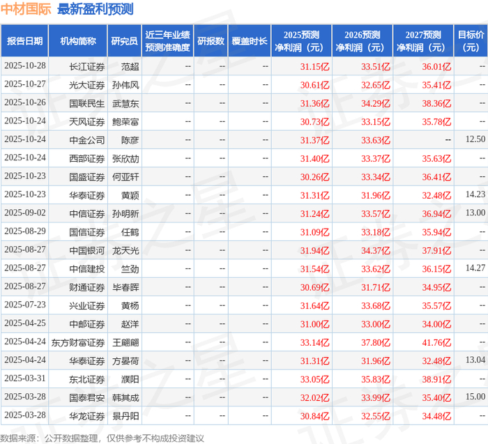 华龙证券股份有限公司景丹阳近期对中材国际进行研究并发布了研究报告《2025年三季报点评报告:业绩保持稳健,海外新签订单持续高增》,给予中材国际买入评级。