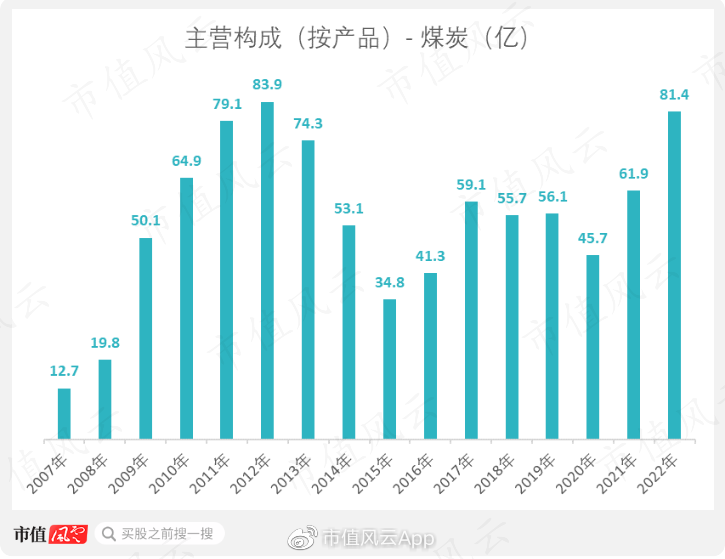 所以,图表外形看来和上图眼熟应该也不会太令人惊讶。2022年的煤炭业务营收81.4亿。