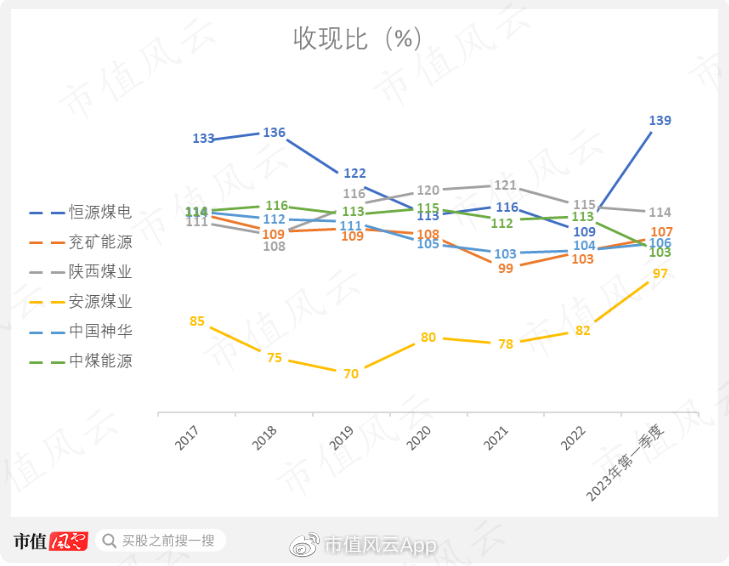 收现率这点,恒源煤电彰显优秀。2017-2019年间五个同行中表现最好,而2023年一季度也是明显优于同行的139%。