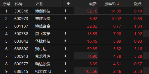 上证报中国证券网讯 12月30日早盘,铜缆高速连接概念股走强,截至9时55分,宝胜股份(维权)走出3连板,博创科技涨超14%,博威合金涨逾8%,奥飞数据、兆龙互连等跟涨。