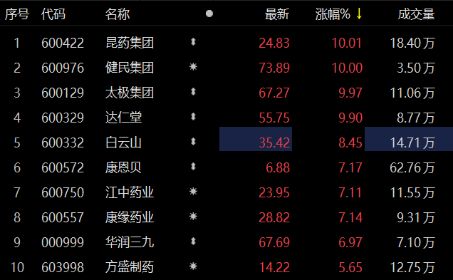 中药板块走高 健民集团涨停