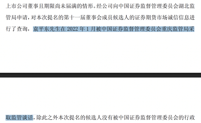 值得注意的是,袁平东在2022年1月被中国证券监督管理委员会重庆监管局采取监管谈话。