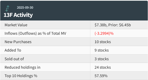 智通财经APP获悉,根据美国证券交易委员会(SEC)披露,有着“华尔街抄底王”之称的David Tepper旗下Appaloosa LP递交了截至2025年9月30日的第三季度持仓报告(13F)。据统计,Appaloosa三季度美股持仓总市值达73.8亿美元,上一季度总市值为64.5亿美元,环比增长14%。Appaloosa的持仓组合中新增了10只个股,增持了9只个股,减持了24只个股,清仓了3只个股。其中前十大持仓标的占总市值的57.59%。