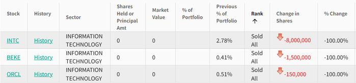 前五大卖出标的分别是:联合健康(UNH.US)、英特尔、Vistra Energy(VST.US)、亚马逊、Meta(META.US)。