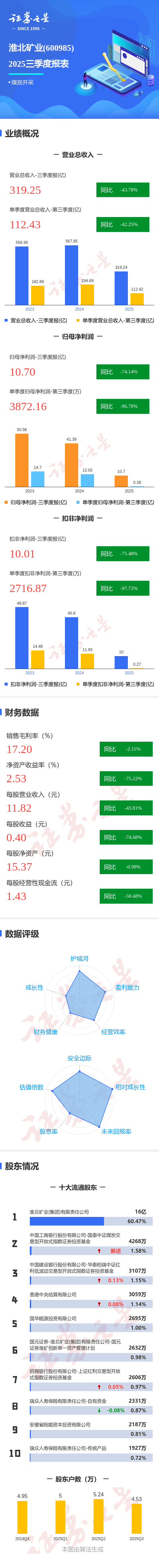 图解淮北矿业三季报:第三季度单季净利润同比下降96.78%
