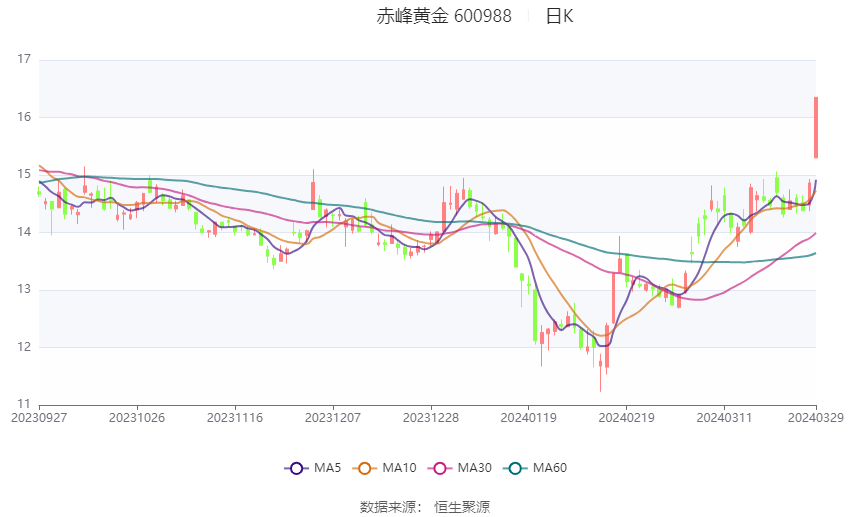赤峰黄金:2023年净利润同比增长78.21% 拟10派0.5元