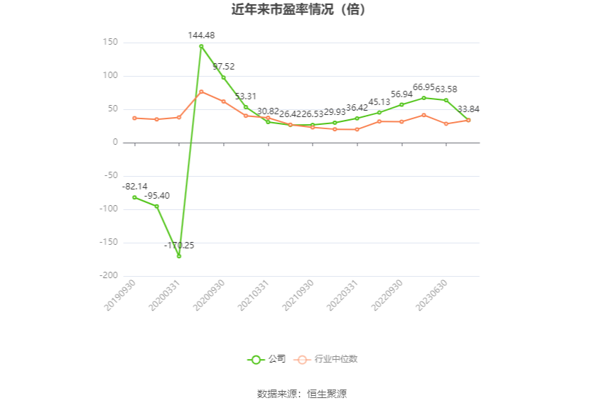 市盈率为负时,不显示当期分位数,会导致折线图中断。
