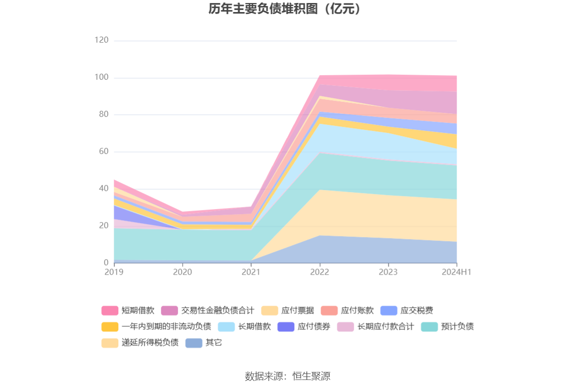 负债重大变化方面,截至2024年上半年末,公司长期借款较上年末减少41.31%,占公司总资产比重下降3.33个百分点;一年内到期的非流动负债较上年末增加128.58%,占公司总资产比重上升2.16个百分点;交易性金融负债合计较上年末增加29.11%,占公司总资产比重上升1.18个百分点;应交税费较上年末增加22.84%,占公司总资产比重上升0.44个百分点。