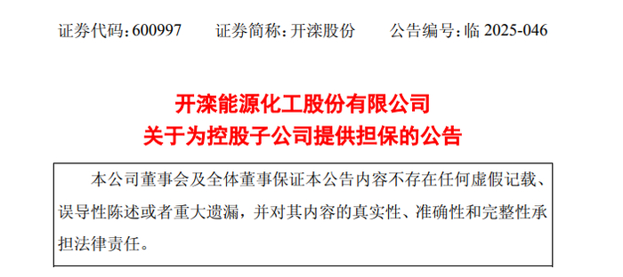 9月30日,开滦能源化工股份有限公司(以下简称“开滦股份”,600997.SH)发布了关于为控股子公司提供担保的公告。