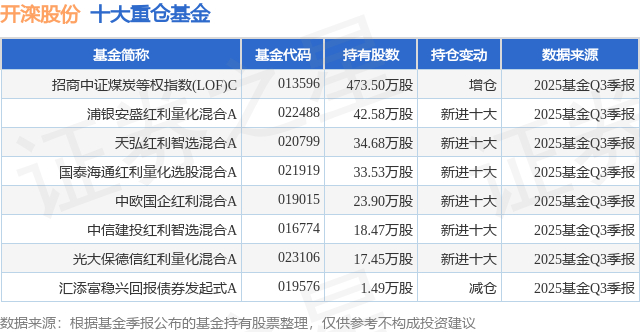 重仓开滦股份的公募基金请见下表: