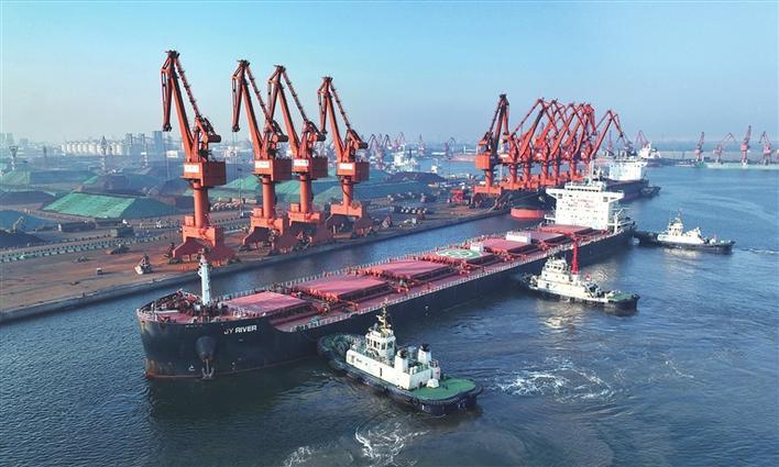 近日,从河北省唐山市海洋口岸和港航管理局获悉,今年上半年,唐山港外贸货物吞吐量完成16095万吨,同比增长28.80%。图为一艘轮船在拖轮协助下向唐山港京唐港区散货码头靠泊。新华社记者 杨世尧 摄