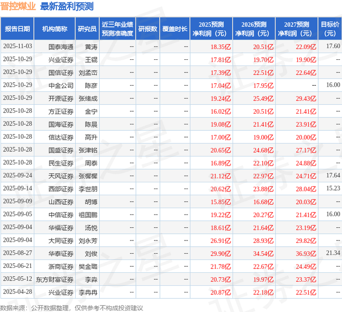 考虑到公司2025年原煤目标产量为3450万吨,当前已经完成全年目标的76%,我们预计2025年-2027年公司归母净利润为18.91/21.14/23.36亿元,对应EPS分别为1.23/1.34/1.48元/股,对应2025年11月4日收盘价的PE分别为13.07/10.50/8.07倍,维持“谨慎推荐”评级。