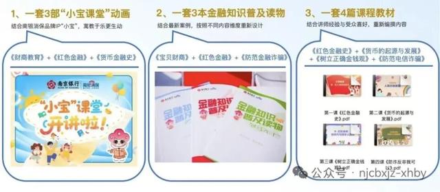 此次由南京银行专业讲师编撰的系列财商宣教内容及读物,已全部印制完毕并准备就绪。该系列内容兼顾专业性与趣味性,涵盖三部“小宝课堂”动画(含《财商教育》等)、三本金融知识普及读物(含《宝贝财商》等),以及四篇核心课程教材(《货币的起源与发展》、《树立正确金钱观》等),为后续青少年财商教育工作开展提供扎实支撑。