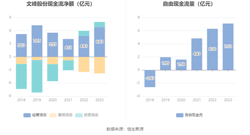 进一步统计发现,2023年公司自由现金流为7.10亿元,相比上年同期增长12.79%。