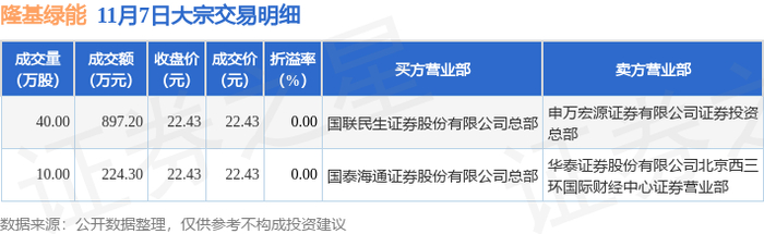 11月7日隆基绿能发生2笔大宗交易 成交金额1121.5万元