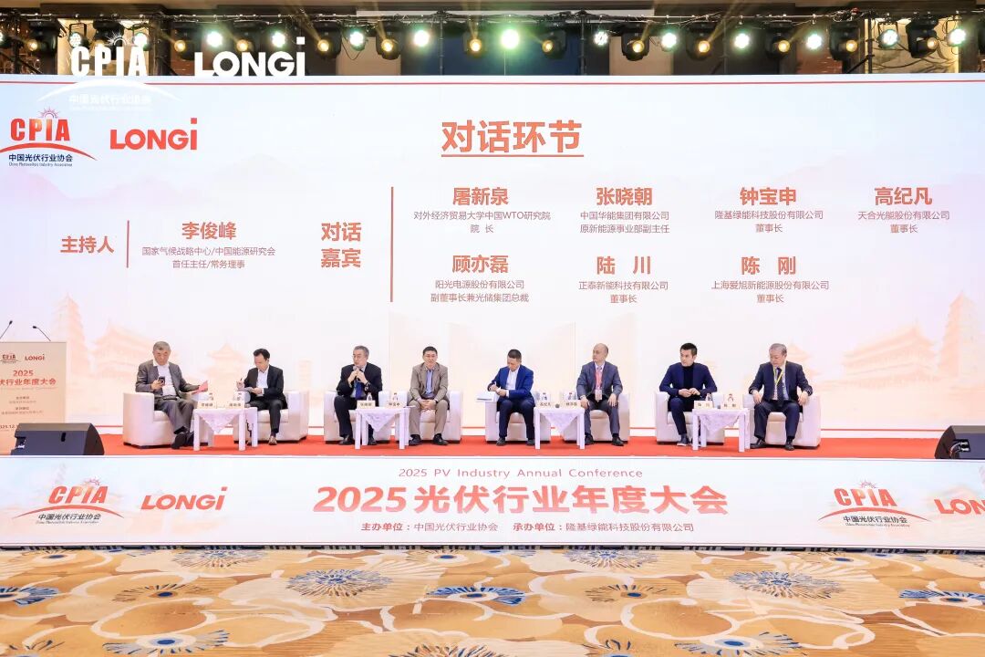 在大会设置的“专家领袖对话”环节中,多位光伏企业负责人齐聚一堂,讨论不再围绕产能与份额,取而代之的是对行业未来走向、潜在机遇与挑战的深层思辨。