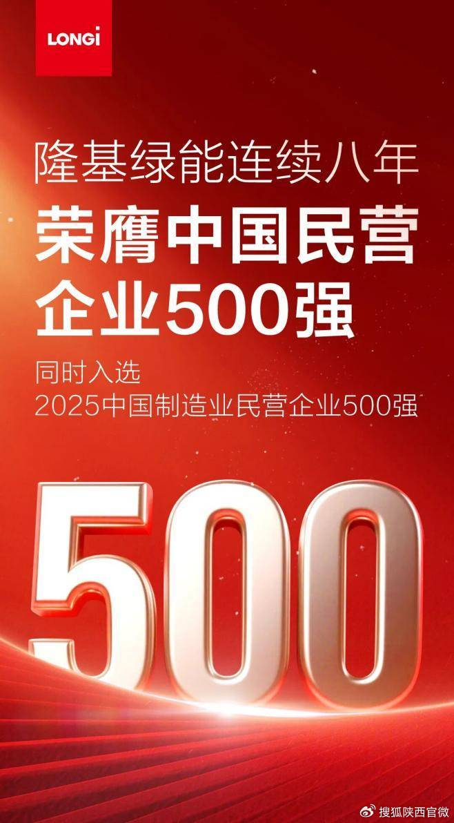 经开区企业快讯 | 隆基绿能连续八年荣膺中国民营企业500强