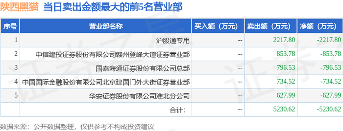 10月20日陕西黑猫(601015)龙虎榜数据:北向资金净买入508.35万元