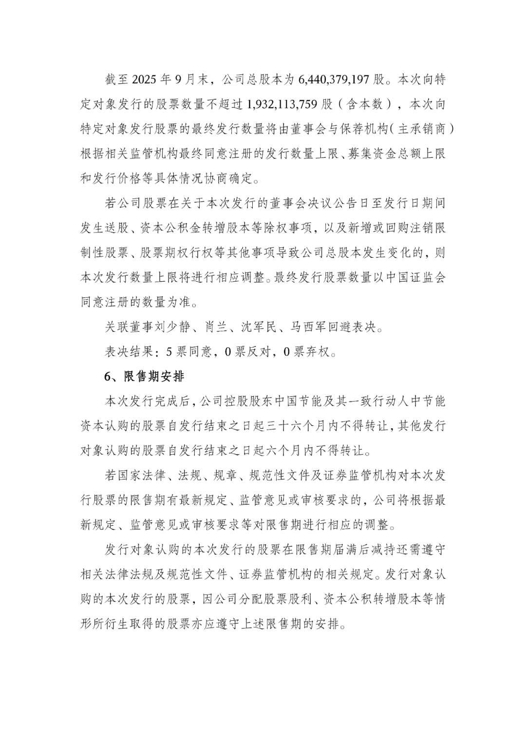 截至2025年9月末,公司总股本为6,440,379,197股。本次向特定对象发行的股票数量不超过1,932,113,759股(含本数)。