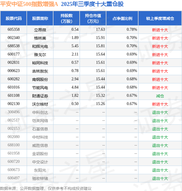 根据2025基金Q3季报公募基金重仓股数据,重仓该股的公募基金共1家,其中持有数量最多的公募基金为平安基金的平安中证500指数增强A。平安中证500指数增强A目前规模为0.11亿元,最新净值1.2879(12月30日),较上一交易日上涨0.37%,近一年上涨20.96%。该公募基金现任基金经理为俞瑶。俞瑶在任的基金产品包括:平安深证300指数增强,管理时间为2021年11月4日至今,期间收益率为-7.46%;平安港股通科技精选混合A,管理时间为2025年9月2日至今,期间收益率为-2.09%;平安资源精选混合发起式A,管理时间为2025年10月13日至今,期间收益率为16.9%。