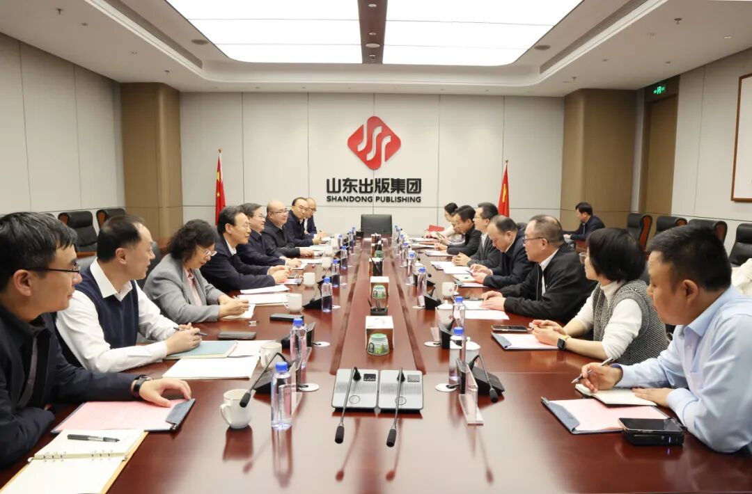 11月13日,广东省出版集团党委副书记、总经理陈玉敏一行到访山东出版集团,双方围绕“十五五”时期发展思路、集团战略管控和母子公司管控、多元化发展、新业务和新业态领域布局、数字出版、数字化转型等内容进行了座谈交流。出版集团党委书记、董事长刘文强出席并主持座谈会,出版集团党委副书记、董事、总经理郭海涛,出版集团党委委员、副总经理刘金祥,广东省出版集团党委委员、副总经理李继光参加座谈。