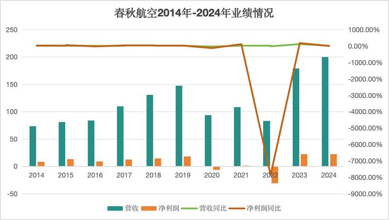新京报贝壳财经记者注意到,过去10年,除在疫情期间的2020年、2022年出现亏损外,春秋航空其他年度均实现盈利,且自2023年以来,春秋航空业绩不仅超过2019年净利润水平,还连续两年突破20亿元。