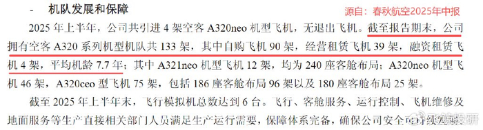 与其余航司的多种机型不同,春秋航空的飞机机型单一,其133架飞机(截至2025年上半年末)全是空客A320系列。