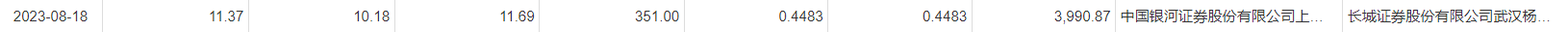 今日大宗交易成交351万股,成交额3990.87万元,占当日总成交额的36.87%,成交价11.37元,较市场收盘价溢价11.69%。
