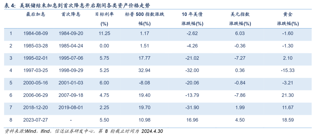 年内降息节点扰动但不改降息方向。综合来看,尽管当前通胀率仍高于目标,美联储考虑降息可能是为了平衡经济增长与通胀控制的需要,以实现经济的软着陆。复盘前几次降息开启的节点,美国经济均已处于下行阶段,而通胀处于高位,2023年12月FOMC会议上鲍威尔提到联储不会等到通胀率降至2%才降息,因为会考虑到降息过晚带来的风险。2024年6月FOMC会议按兵不动,维持利率目标不变,但具体时间节点仍需观察核心经济数据走势。截至2024年6月15日,CME的Fed工具显示市场预期9月降息概率为61.1%。
