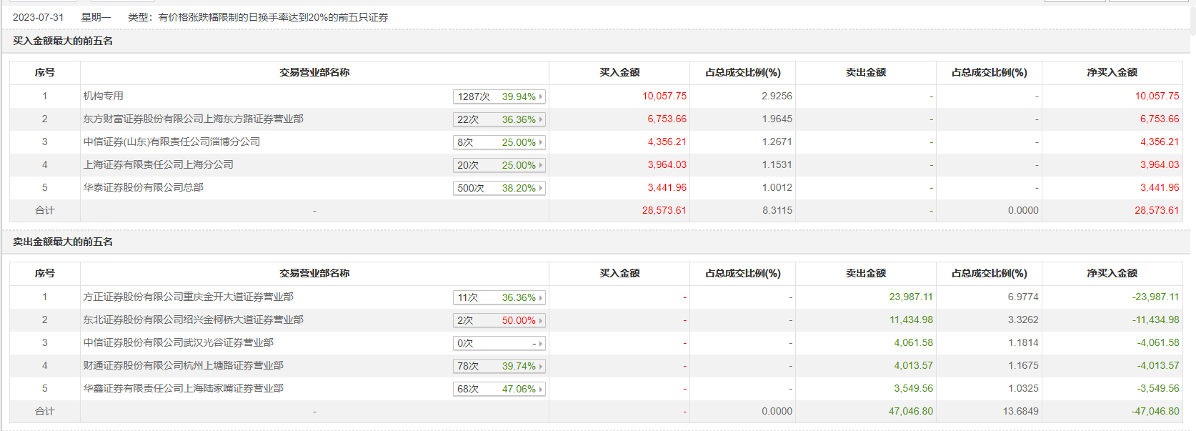 具体来看,机构合计净买入1.01亿元。此外,东方财富证券上海东方路证券营业部、中信证券(山东)淄博分公司分别买入6753.66万元、4356.21万元;方正证券重庆金开大道证券营业部、东北证券绍兴金柯桥大道证券营业部分别卖出2.40亿元、1.14亿元。
